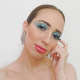E a última, mas não menos brilhosa, rs, com um outro tipo de “degradê” de glitters, usando o azul, prata e verde com a base feita com o pigmento azul cintilante. Nessa usei o lápis retrátil azul na linha d’água e rente aos cílios inferiores. Blush stick usado também como batom! Produtos usados: